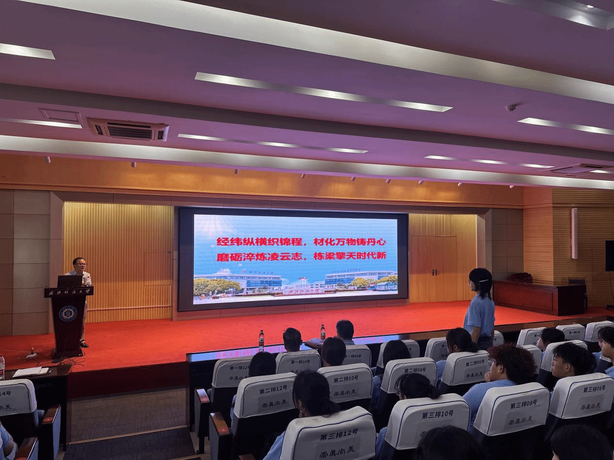 执行院长杨应奎以“材通天下,料定未来”为主题,从校情、院情及学科应用三方面为新生勾勒出全景蓝图。立足“校之基”,以详实数据凸显办学硬核实力。 他从校区分布、学科排名与科研成果等方面入手,系统展示了学校作为高层次人才培养平台的坚实基础与综合优势。聚焦“院之魂”,以发展脉络诠释育人卓越成效。 他回顾了雷火竞技平台从1993年“缘起纺织”到如今拥有三大本科专业与完整培养体系的特色发展之路。学院不仅拥有一流师资队伍,更在“挑战杯”等国家级赛事中屡获殊荣,毕业生升学至华中科技大学、武汉大学等海内外名校,彰显了“教学—科研—育人”协同发展的强劲势头。展望“材之用”,以宏大视野激发学子使命担当。 他紧扣“材料是人类文明的基石”,通过快舟火箭、海底隧道等“上天入地”的案例,生动阐述了材料学科在服务国计民生中的关键价值,并激励新生将个人理想融入国家战略,在未来探索中实现价值的同频共振。