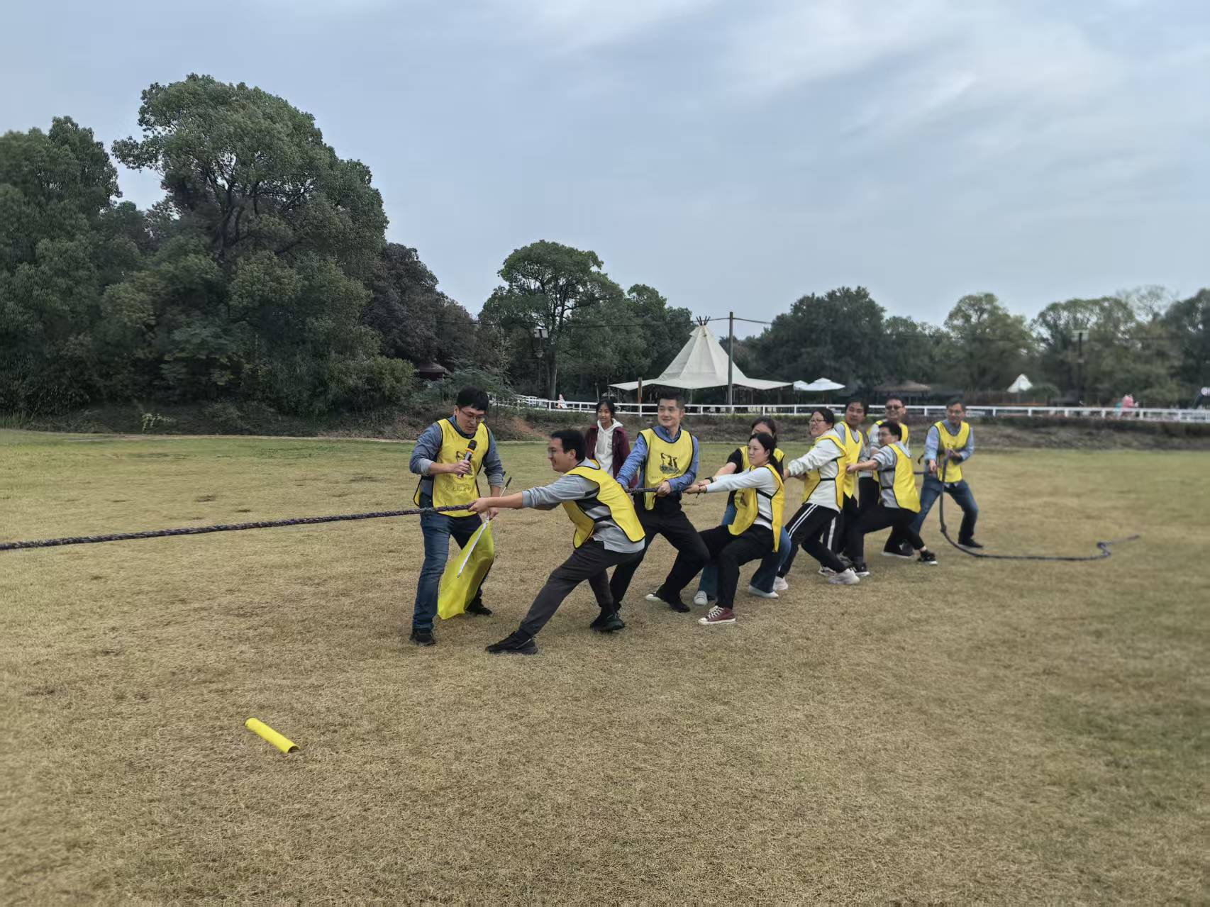 本次活动以“体能+心理+协作”为核心设计理念,设置鼓动心声利用所给的材料(一面鼓、一个球、若干根绳子)制作出一面靠绳子牵拉的鼓。然后使每个队友都牵拉着其中一条绳子,通过绳子 控制鼓面来颠球。珠行千里整个团队每个队员手拿一根半圆形的PVC球槽,将球 连续传动(滚动)到下一个队员的球槽中,并迅速地排到 队伍的末端,继续传送前方队员传来 的球,直到球安全的到达指定的目的地为止。拔河等活动。