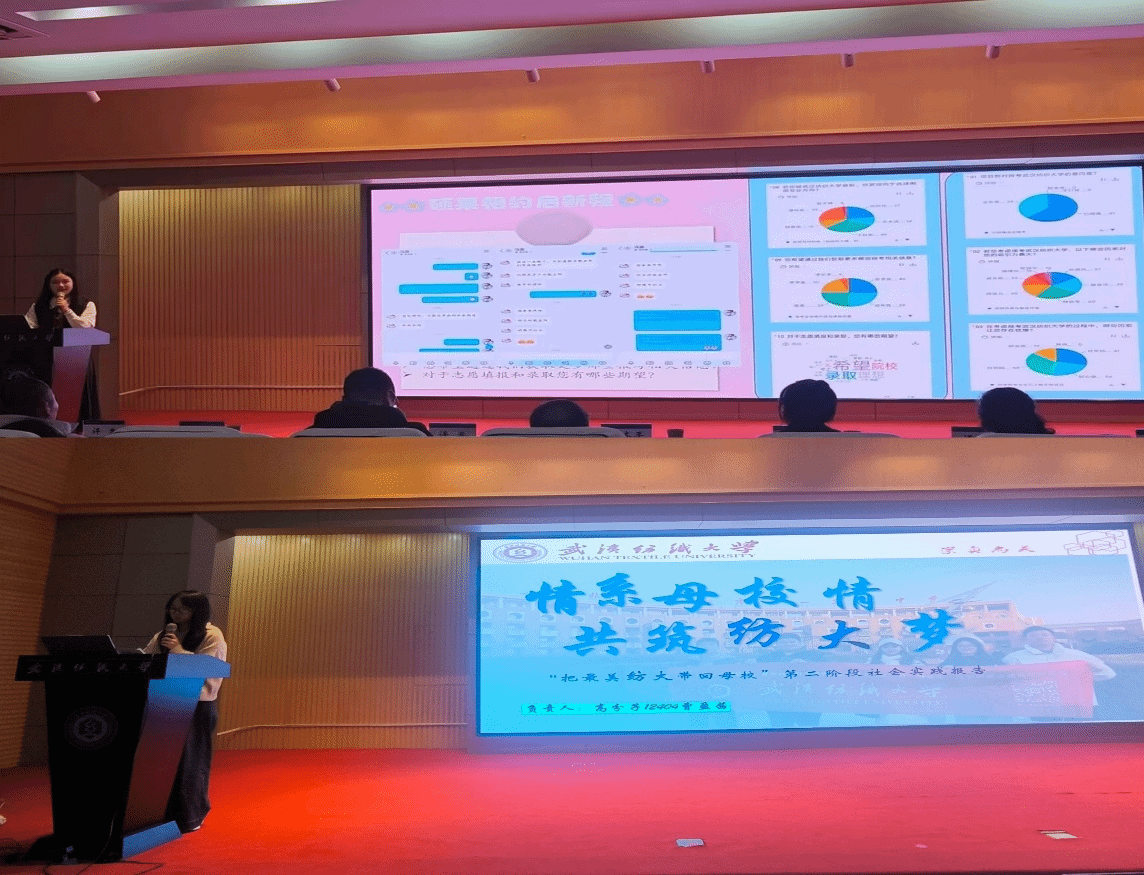 答辩会上,我们参赛团队通过实物展示、视频回顾、PPT讲解等方式,结合自身求学经历,从校园环境、学科建设、文化活动等方面展开讲述,展示了精彩的实践经历。在实践中,同学们开展了“纺大故事分享”、“专业特色解读”、“互动答疑交流”等活动,生动诠释了“崇真尚美”的校训精神,分享了团队在实践过程中的感悟与收获。